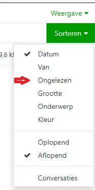 Het enige wat je in webmail kan doen om ongelezen mails bij elkaar te krijgen is de sortering aanpassen: