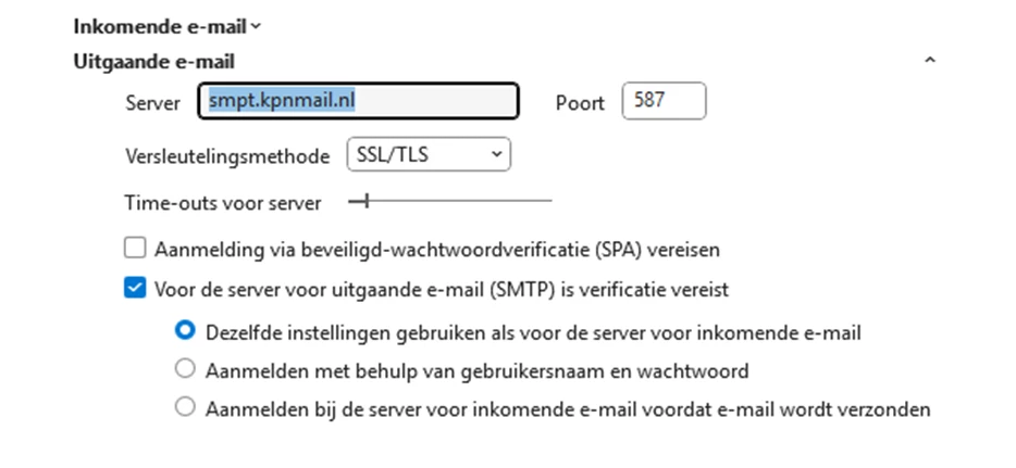 Goed gespot ​@AriënC, ik had daar zo overheen gekeken. Is het gelukt met SMTP.kpnmail.nl ​@Padrona?