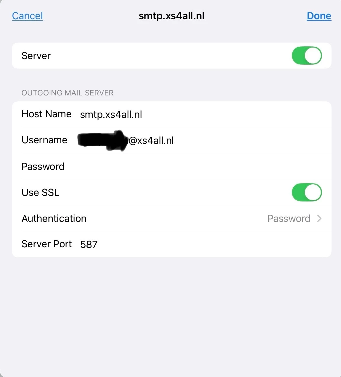 - Bij mijn weten zijn de wachtwoorden op alle apparaten goed ingesteld. We zijn overgegaan op het volledige email adres als username, voorheen was er bij XS4ALL een aparte username.