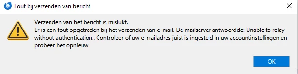 Thunderbird geeft foutmelding: Unable to relay without authentication