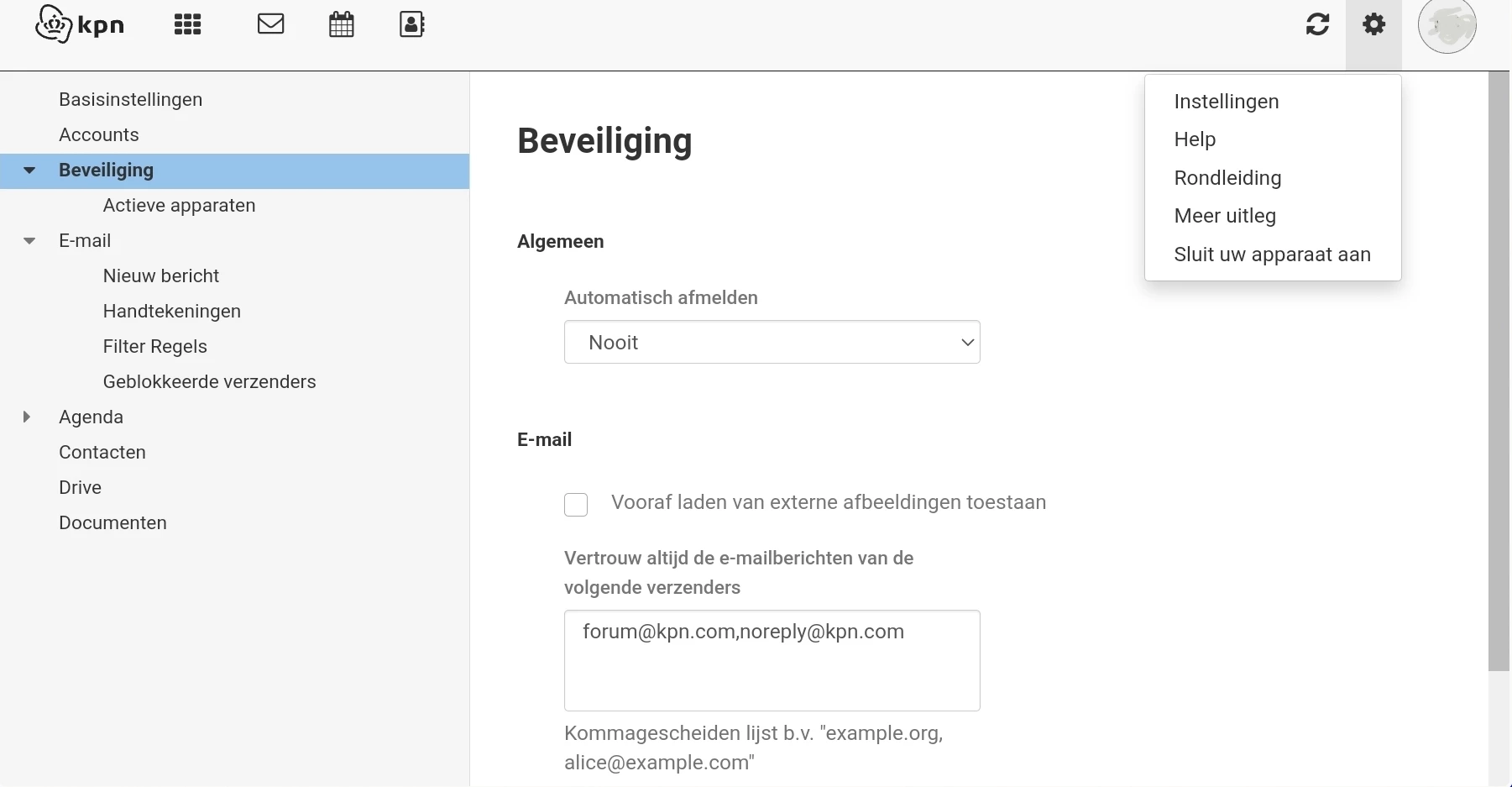 Dat kan je instellen via het tandwieltje rechtsboven en Instellingen. Kies dan links voor Beveiliging.