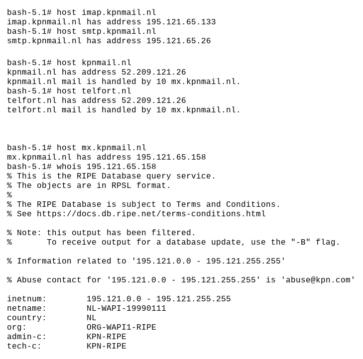 weet iemand waar de email servers van KPN staan? en geldt dat ook voor Telfort email?