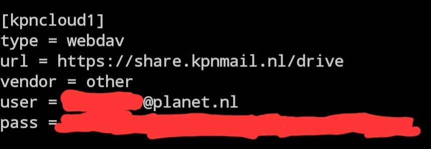 Met rclone werkt KPN Cloud nu prima via WebDAV als permanente schijf.
