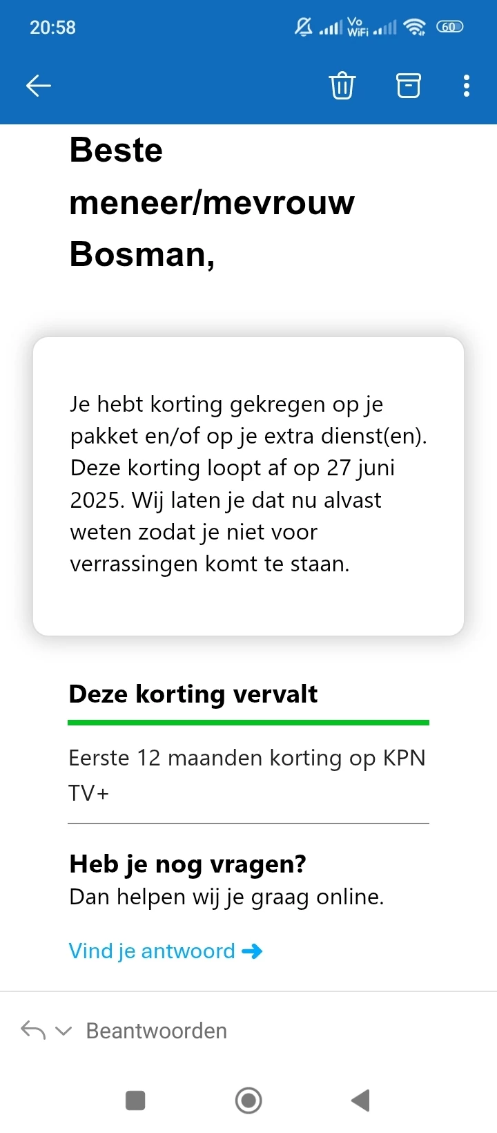 Abonnement afgesloten voor 2 jaar alles in 1, eerste jaar korting dan tweede jaar internet downgraden en 58€ betalen.