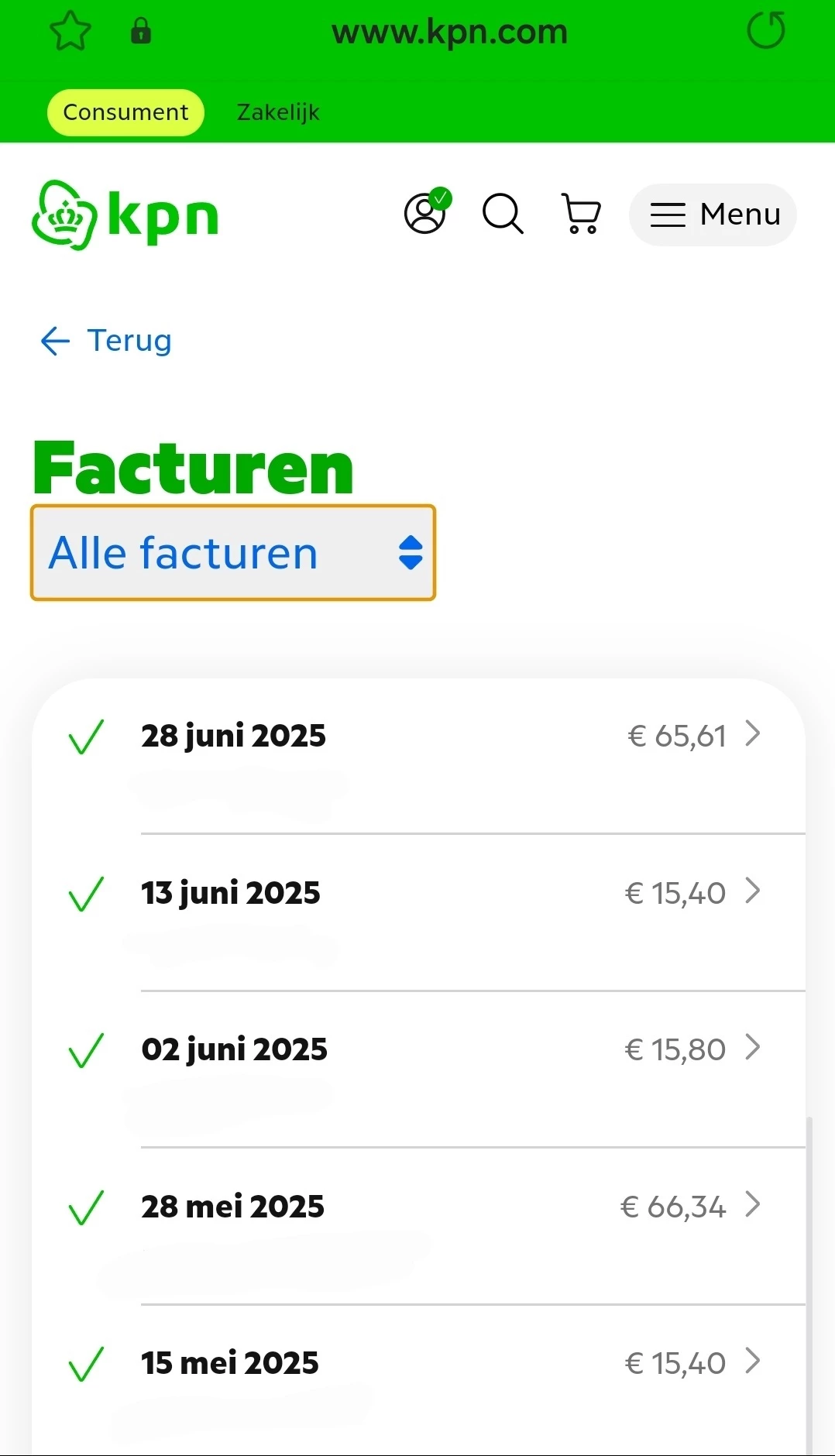 Kan je wel inloggen op MijnKPN? Zie je het rijtje met facturen staan?