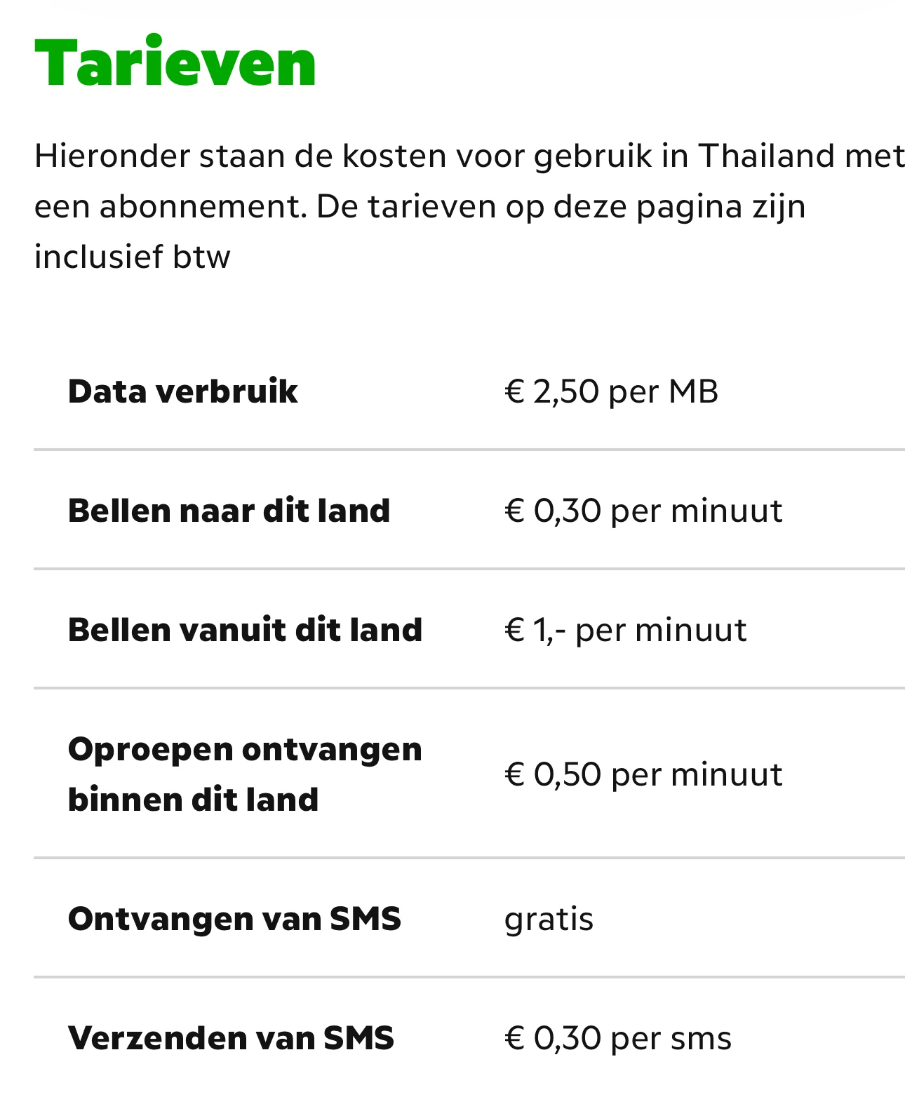 Bellen, gebeld worden en sms’en vallen buiten deze bundels!!