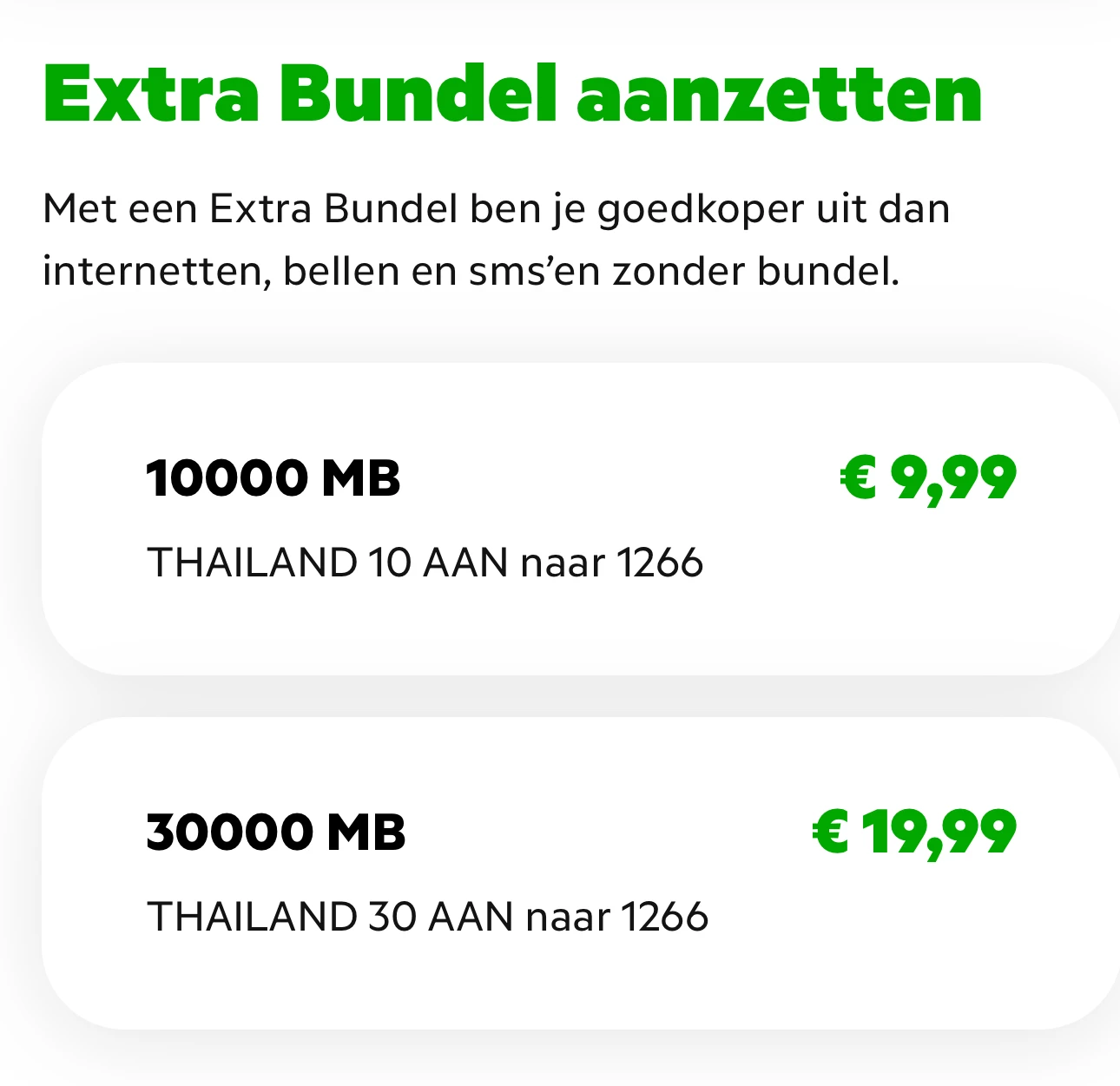 De actuele buitenland bundels voor Thailand zijn: