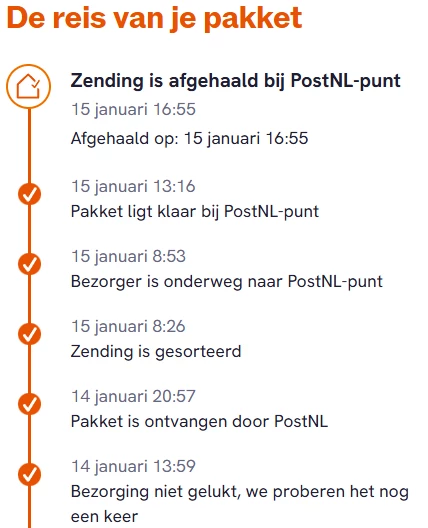 Bij PostNL zelfs kan je zien wanneer jouw pakket bij PostNL-punt afgeleverd was