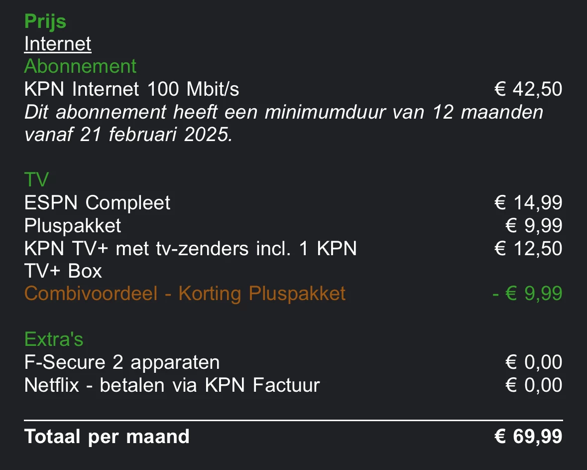 Let er trouwens wel op dat je het Combivoordeel over zes maanden bevestigt via MijnKPN. Je ontvangt daar een bericht over.