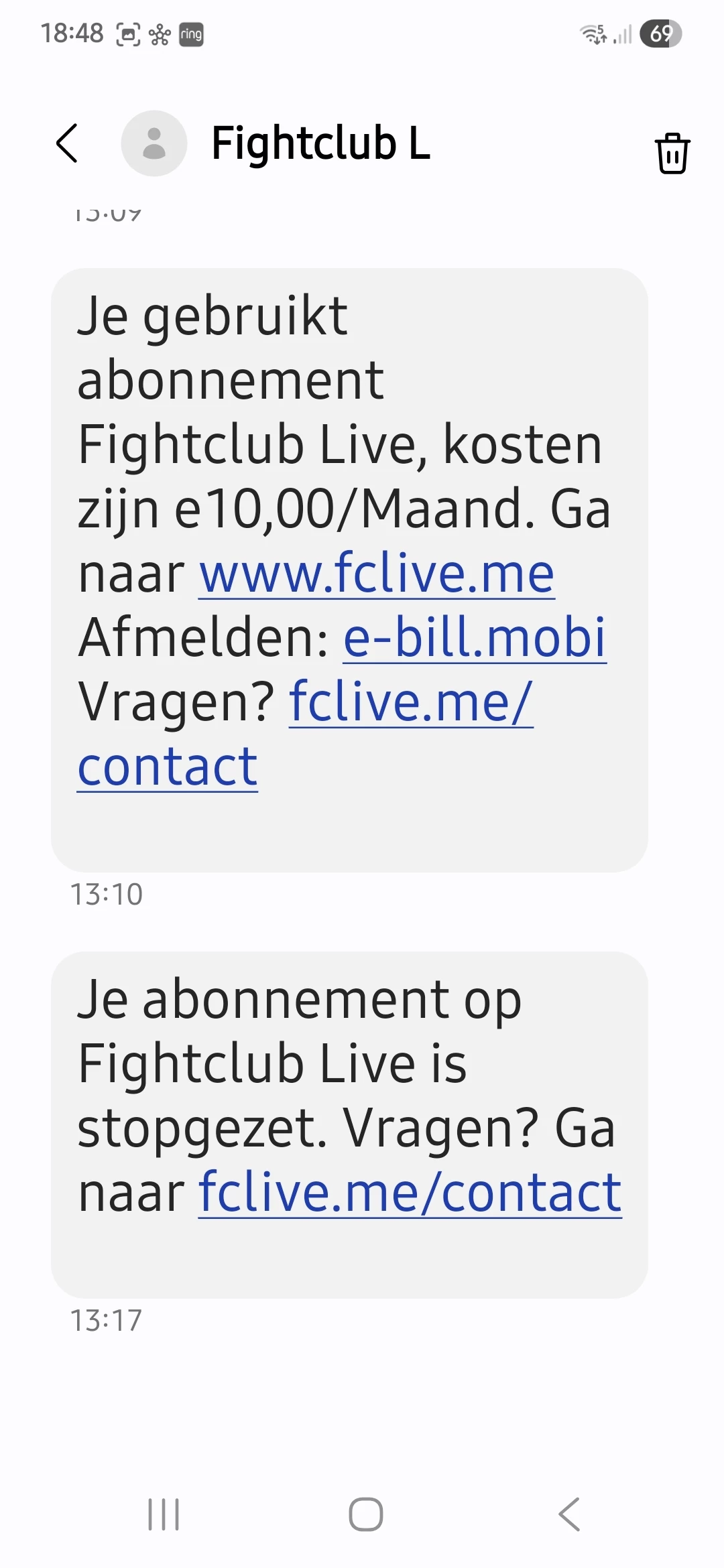 Ik zie dat meerdere klanten ineens €9,99 of €10 op hun KPN-factuur hebben staan voor Fightclub Live, zonder dat ze hier bewust voor hebben getekend. Dit is niet alleen vervelend, maar ook waarschijnlijk in strijd met de wet.