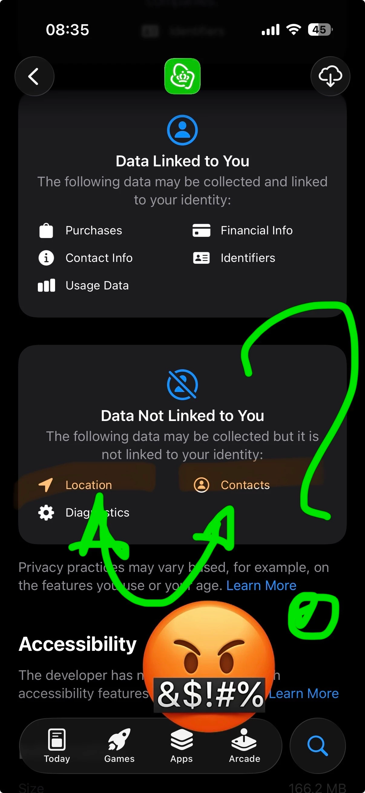 En MIJN informatie staat in ‘contact info’ en hoeft niet uit ‘Apple iOS “contacts”’ te komen… dat zijn andere categorieën, iig bij Apple.