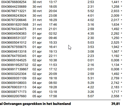 KPN is charging me 40 euros for this. For the calls that I haven't received and I haven't picked up. I called the customer service and they are refusing to even analyze the issue. The answer I got is that it is not possible for a call to end up in an invoice if I haven't picked up. They offered me 15 euros. I rejected.