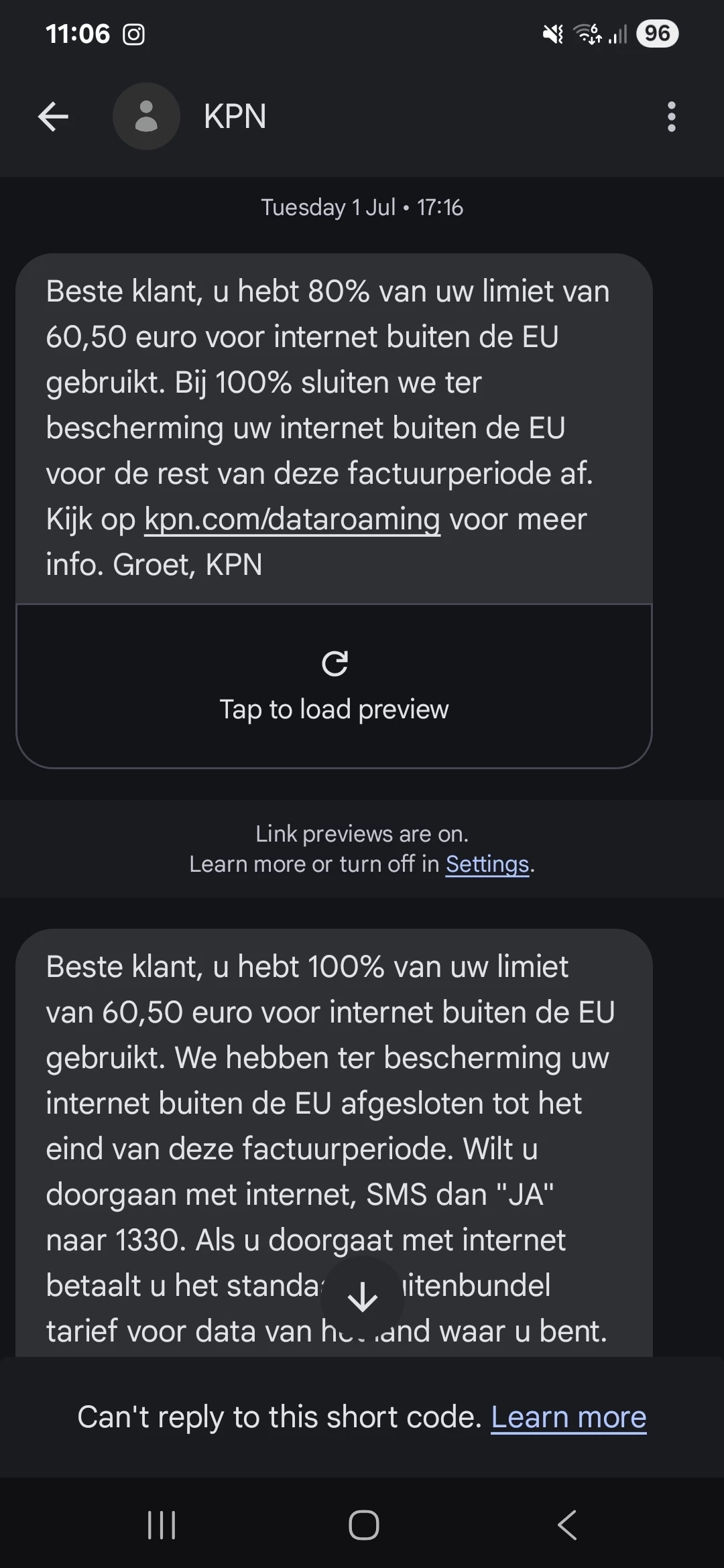 despite doing this i received 2 messages within a minute of each other stating that i had used 80% of my limit and then 100%, charging me 60.5 euros. how is this acceptable?!? ive seen so many other people with similar stories. i was not aware of such "limit". why was i charged if my data roaming was off?