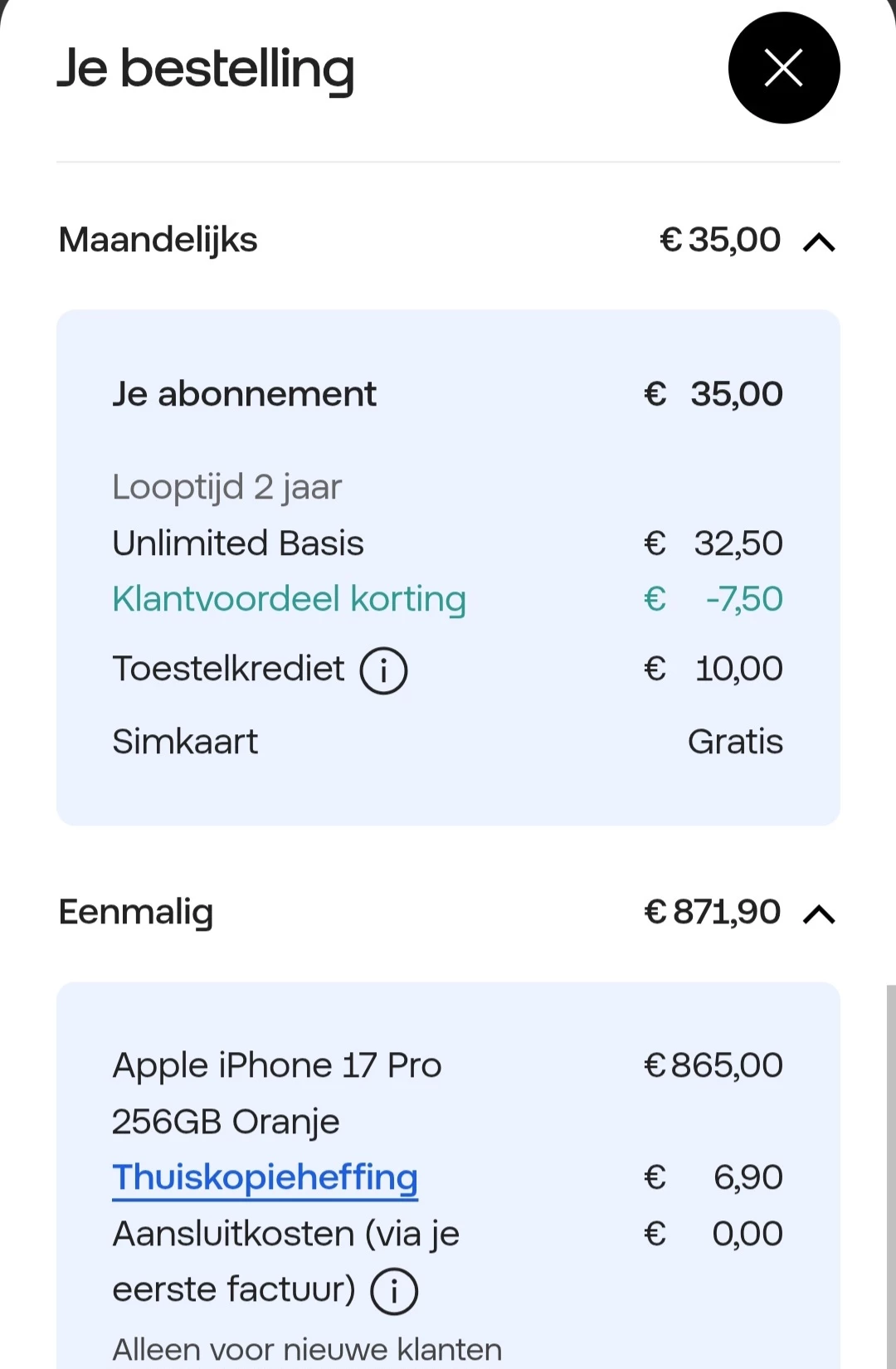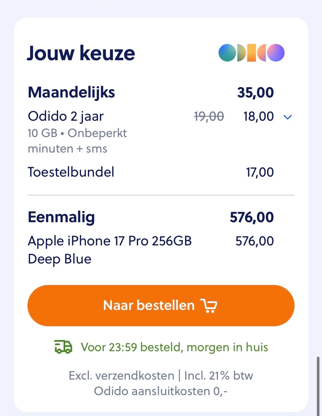 Het is mobiel.nl die een scherpe actie heeft op het toestel en niet Odido. Zoals ​@Marlon92 al zegt, is verschil als je op de site van KPN en Odido afsluit maar kleine 50 euro.