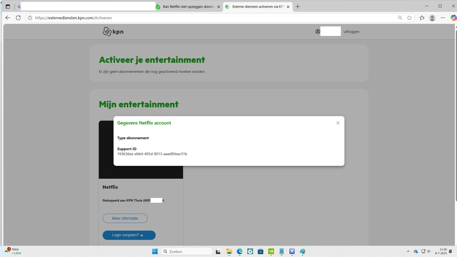 Netflix zegt  bel KPN en vraag inderdaad!  een service code ,