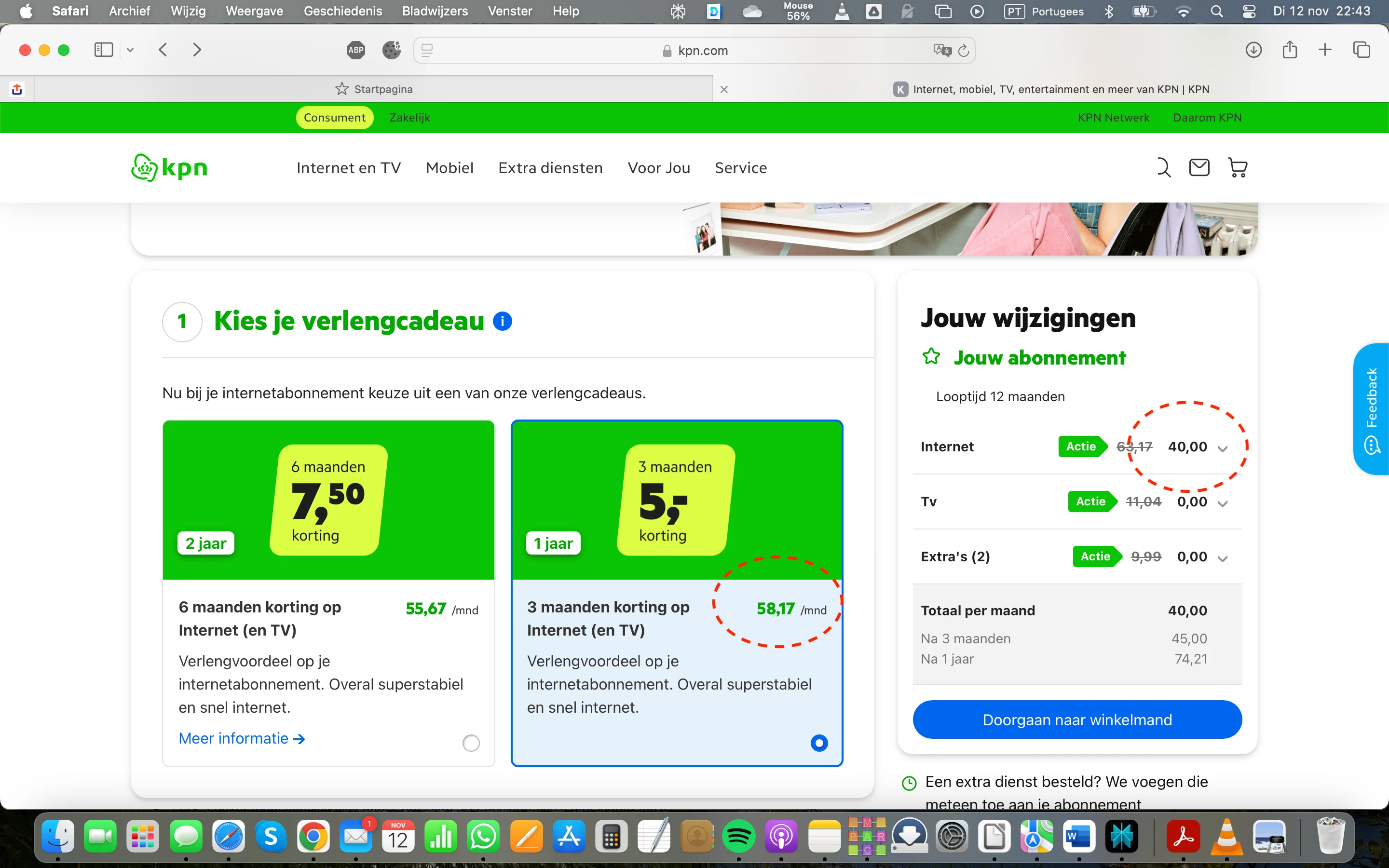 Ter illustratie: hieronder de schermopname van het gepresenteerde aanbod, zie de twee rode cirkels.