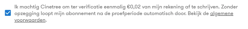Als er toch een abonnement is gestart, is er of per ongeluk ergens op geklikt of iets niet goed gegaan aan de kant van Cinetree. Wij hebben geen zicht op de accounts van Cinetree, dus ik kan het niet inzien. Je kunt daarvoor het beste even contact opnemen met Cinetree, mogelijk kunnen zij nog iets aan dat abonnement doen.