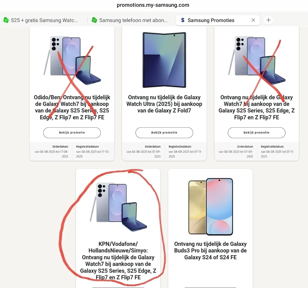 De juiste link voor KPN is https://promotions.my-samsung.com/nl/offers/RRE65X8S8WBFV