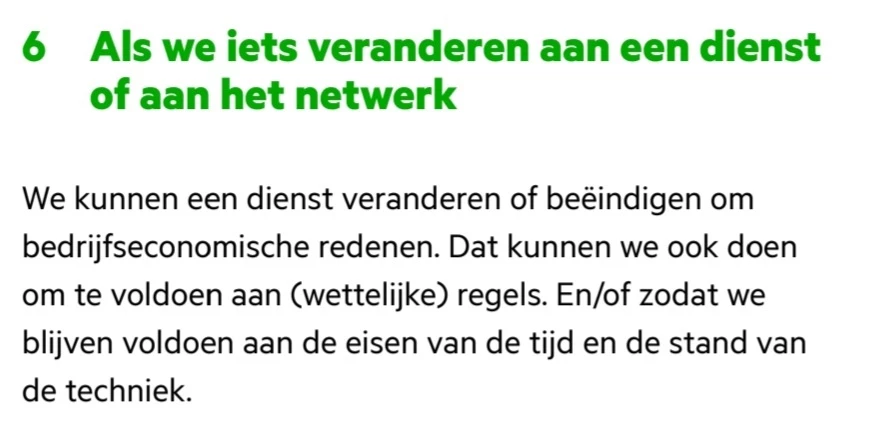 In de algemene voorwaarden staat dat KPN wijzigen mag doorvoeren in het abonnement.