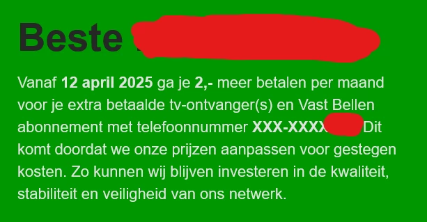 Wij hadden ook bericht gekregen, om die reden hebben wij nu één TV+ ontvanger weggedaan en vervangen voor een simpel Android TV kastje. Ook vast bellen gaan we binnenkort opzeggen.
