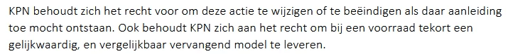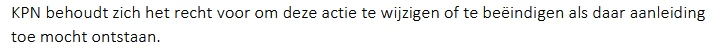 Ik begrijp dat KPN zich nu snel probeert te beroepen op de actievoorwaarden ("het recht om de actie te wijzigen of beëindigen"), maar dit rammelt aan alle kanten.