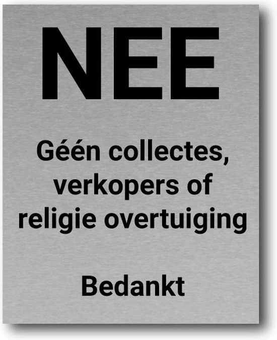 “NEE, Géén Collectes, Verkopers of Religie overtuigingen”