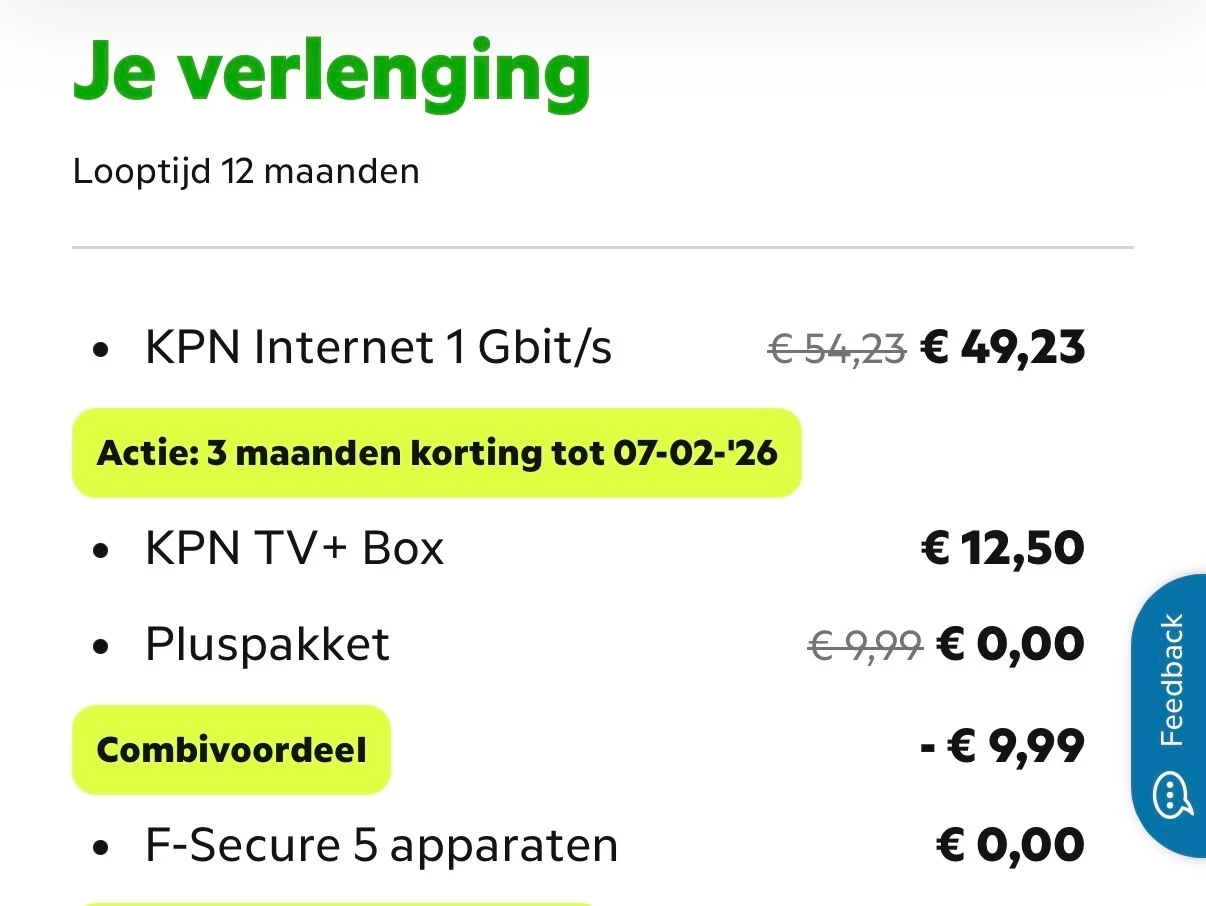 Ik wil graag mijn KPN Internet + TV abonnement verlengen, maar ik loop tegen iets geks aan.