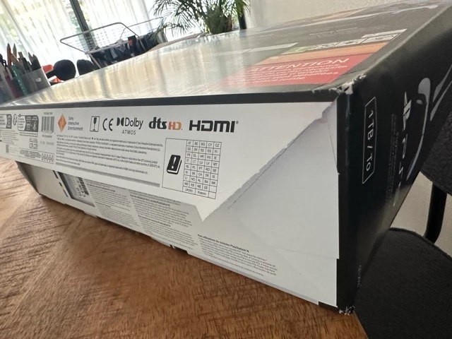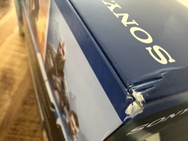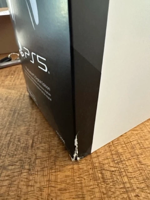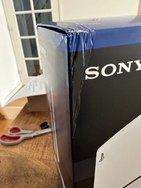 Ik heb gisteren de PS5 in ontvangst mogen nemen. De doos van de PS5 is zwaar beschadigd, de onderkant is opengescheurd en de verzegeling aan de bovenkant van de doos is stuk, met daarovereen dezelfde hele ronde stickers geplakt.