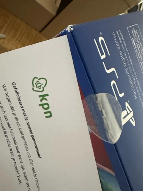 Eerst gebeld met uw servicedesk, die geeft aan dat het geen probleem is van de KPN (sorry, met wie heb ik een contract afgesloten?) en verwezen mij door naar Micromedia (kpn Daily). Micromedia geeft aan dat deze beschadigingen komen door DHL (de verzenddoos is veel minder beschadigd) en dat ze willen kijken of het serienummer van de PS5 eerder gebruikt is. Ik heb aangegeven bij Micromedia dat ik, als mij een nieuwe PlayStation 5 beloofd wordt, ik verwacht dat ik geen tweedekans of refurbished apparaat toegestuurd krijg. De brief in de verzenddoos geeft ook aan; gefeliceerd met u Nieuwe PlayStation.