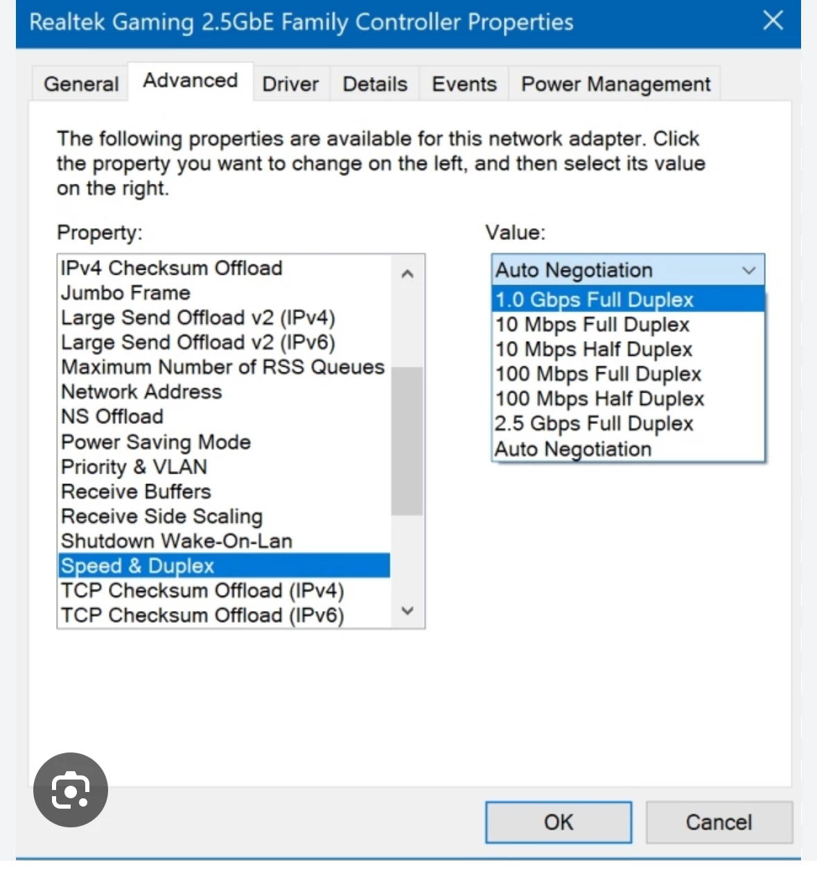 zet linkspeed op 1000Mbps/full duplex ipv auto negotiation