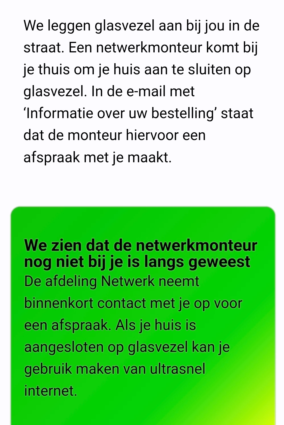 En dat terwijl mijn buren al meer dan een jaar glasvezel hebben van KPN.