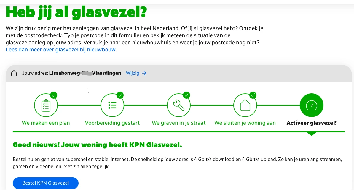 Hij zegt aan mijn kant nu dat glasvezel beschikbaar is. Bij jou ook?