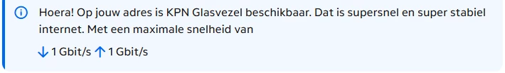 Dit punt is alleen voor Ziggo. Maar als je een abo bij kpn afsluit zal er een monteur komen voor de (afronding van de) aanleg van glasvezel, want dat is volgens de postcodecheck bij jou beschikbaar.