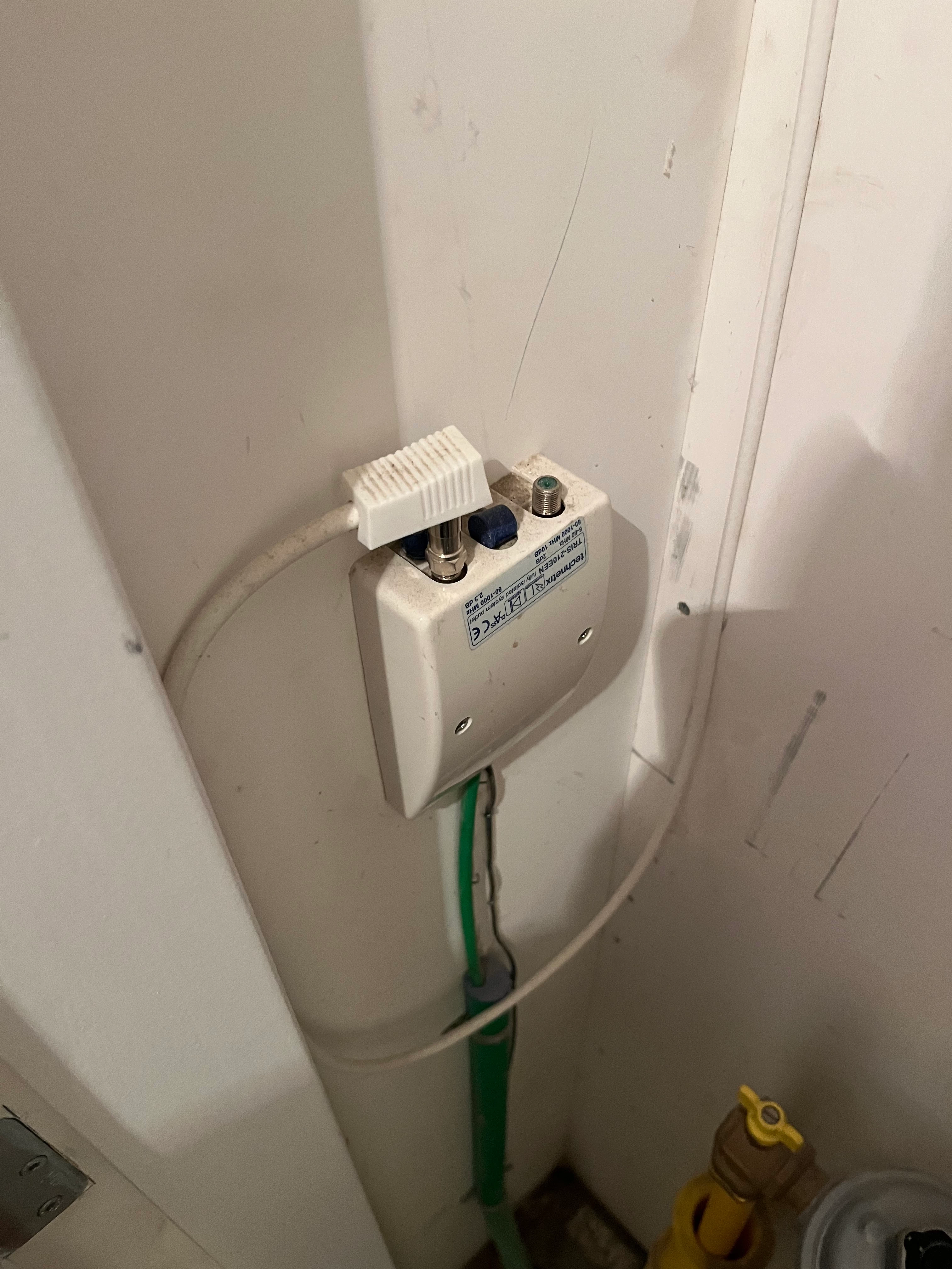 Ik woon in een gesplitst pand aan de 50B. Het betreft een officieel gesplitst bovenappartement met een eigen meterkast. Er is een coax-aansluiting aanwezig (groene kabel) in de woning.