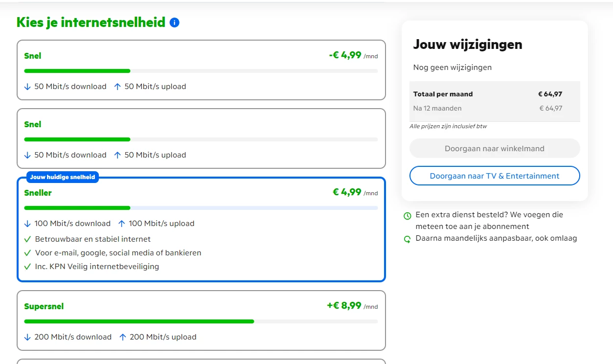 Wij zitten nog op een oud abonnement (Lijbrandt/Telfort klant) en als je zelf wat wil aanpassen ga je meer betalen dan via een link verborgen op het forum: https://www.kpn.com/shop/verlengen/internet