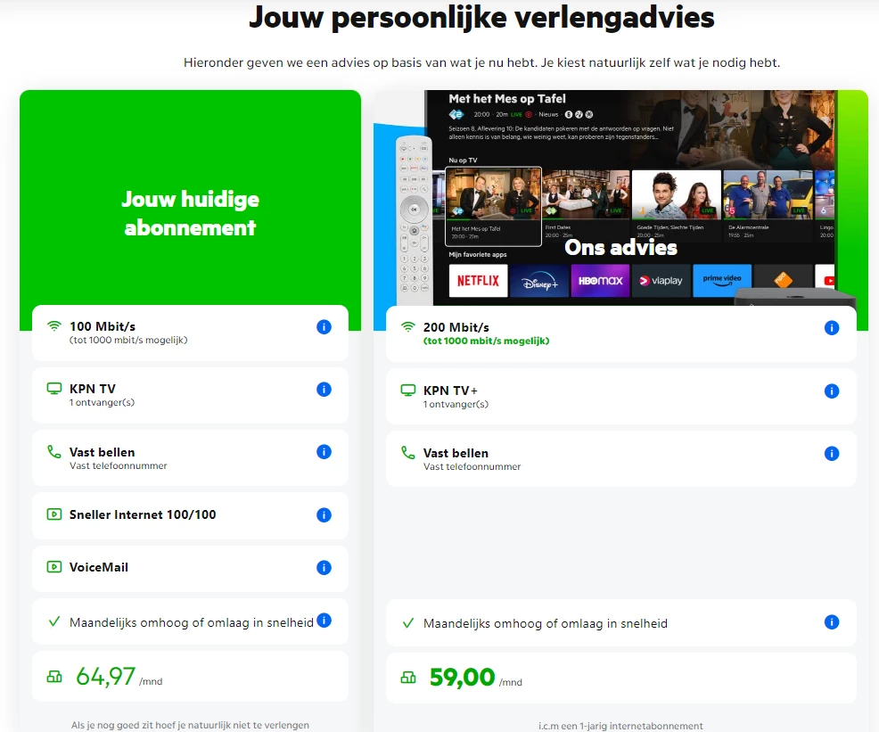 Het is een hele simpele vraag; Toon mij waar ik dezelfde informatie kan vinden als in de gevonden link op het Forum: https://www.kpn.com/shop/verlengen/internet (en op die pagina op “Toon mijn persoonlijk advies” klikken).