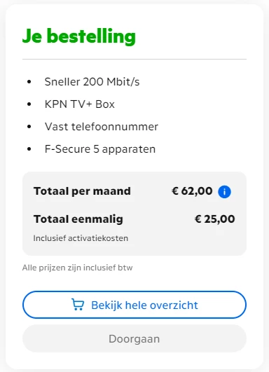 Via MijnKPN->Producten->Internet->Abonnement aanpassen krijg je een aanbod gebaseerd op huidig abonnement wat duurder is (komt bv nog eens 4 euro bovenop voor 200Mbit).