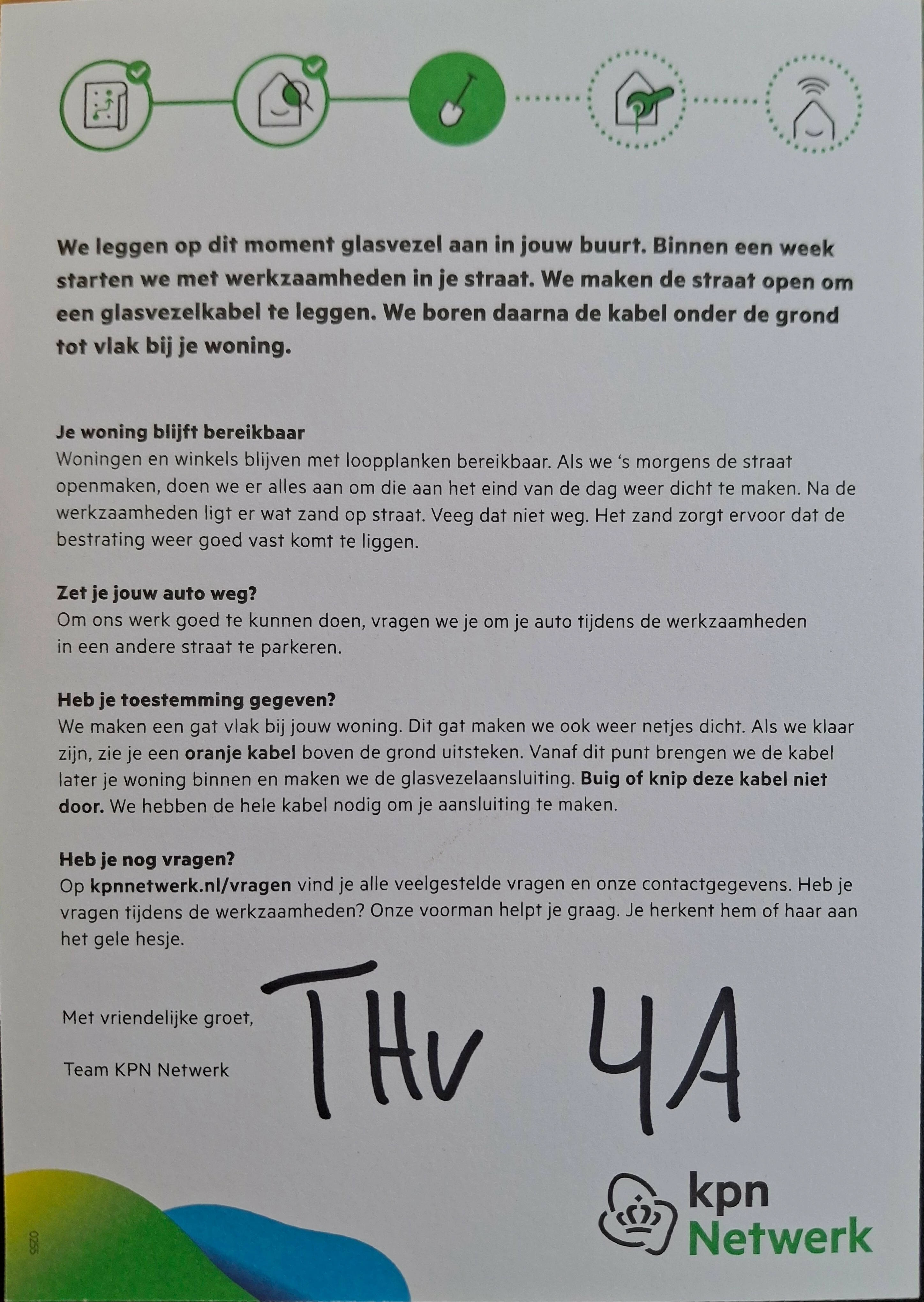 Bericht over aanleg glasvezel, echter is er al een KPN glasaansluiting