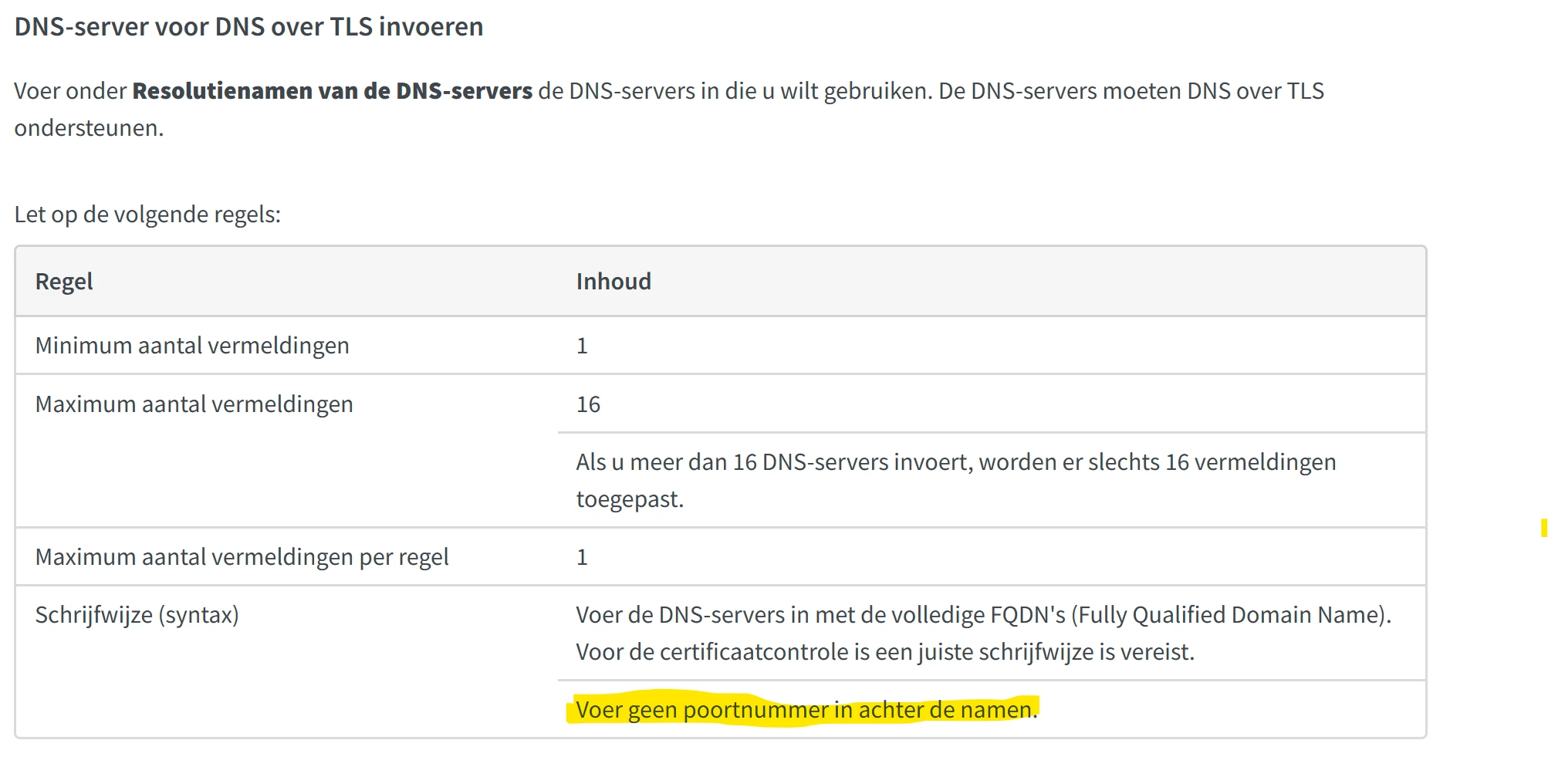De afwijkende poort die kpn gebruikt is niet conform de officiële DoT-standaard (RFC 7858). Daarom kunnen we m.i. dus zeggen dat kpn DoT niet (goed) ondersteunt. Niet met hun eigen routers, maar ook niet met de Fritz!Box die ook door hen wordt ondersteund.