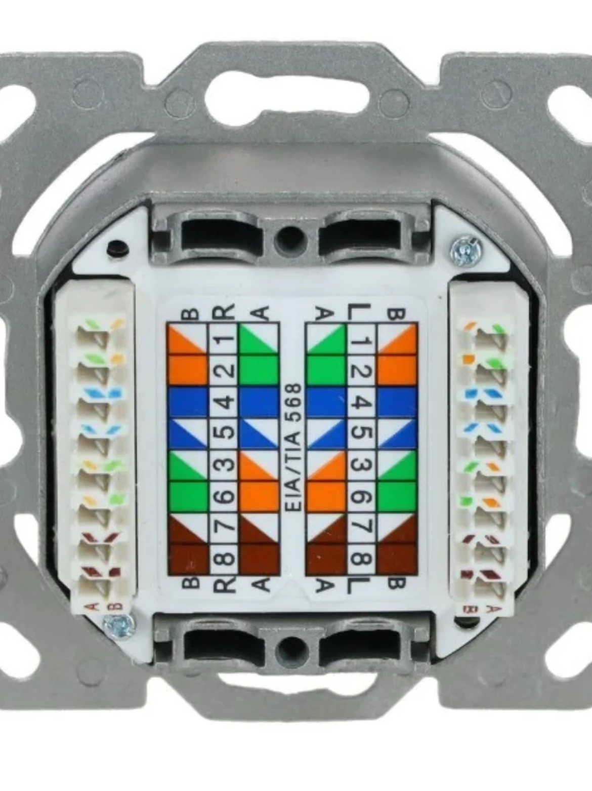 Ik heb het stopcontact nu volgens het T568 B protocol aangesloten: