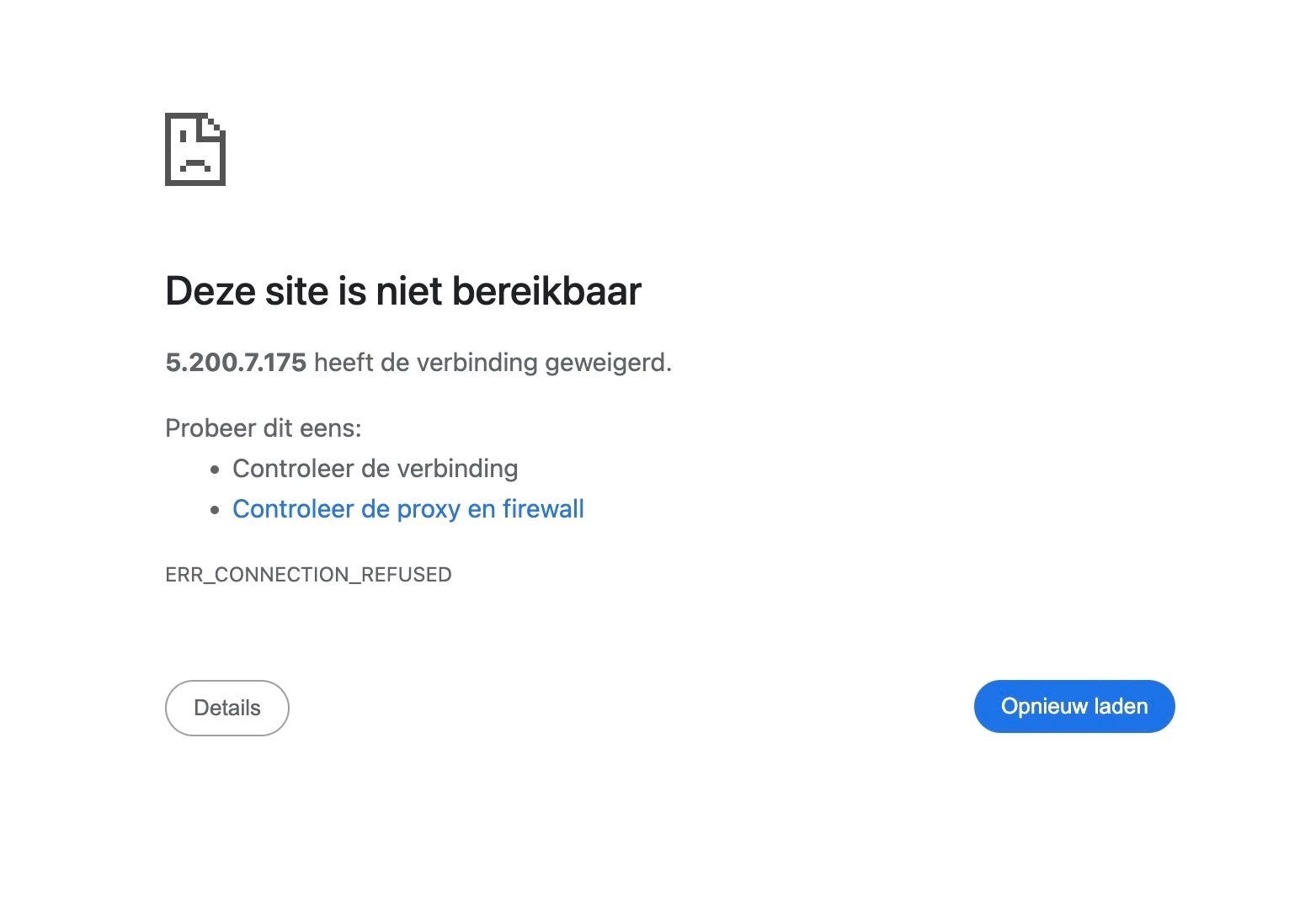 Mocht een reset geen verschil maken, zou je dan het ip in de adresbalk van zijn browser willen zetten, en kijken wat er gebeurt? Als wij dit proberen met dat ip zien we een melding: webserver is functioning normally. Zie jij dat ook of zie je wat anders?