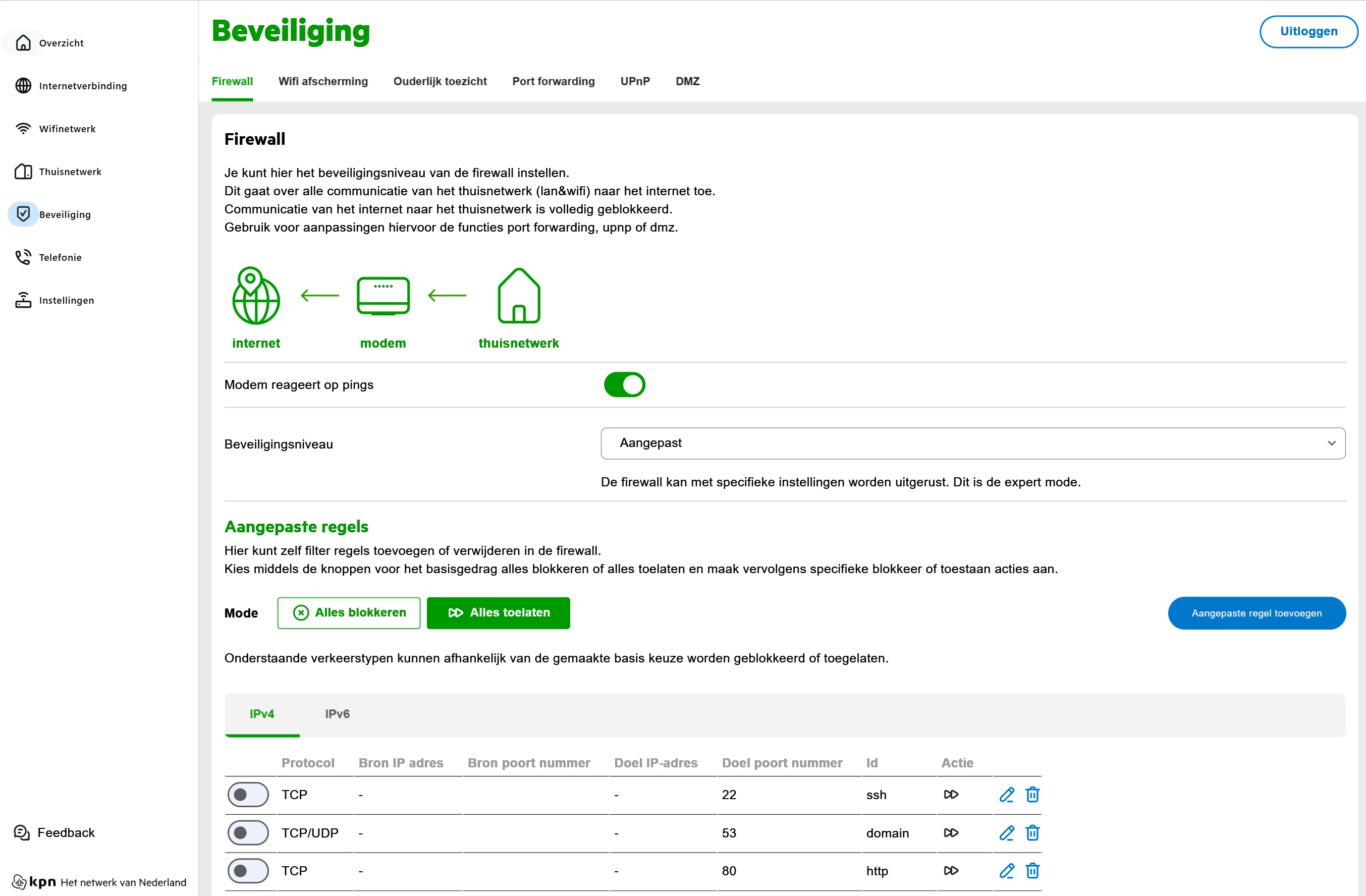 Jazeker! Expliciet poort 21 toetemming geven dat deze gebruikt mag worden. Mijn KPN internet werkt nog niet dus ik kan niet testen hoe het in de KPN modem er uit moet zien.