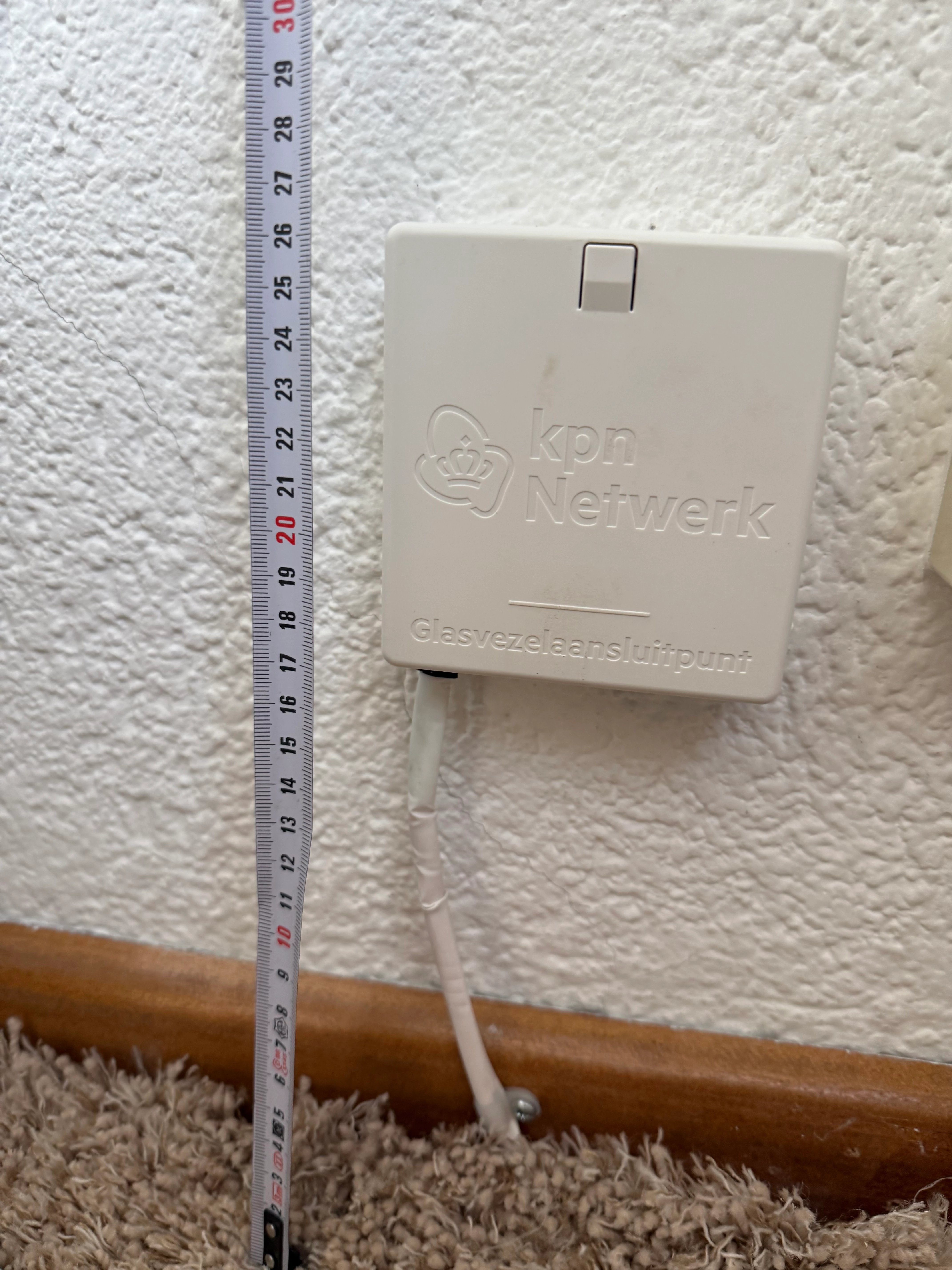 Ik ben benieuwd.Ook zonder die plint lijkt het me een moeilijk geval. De glasvezel zit ook dan nog erg onhandig schuin en ruim van de muur af. Houd ook het advies van ​@Ik_Combineer in gedachten. Doe een beroep op een installatiemonteur van provider KPN.
