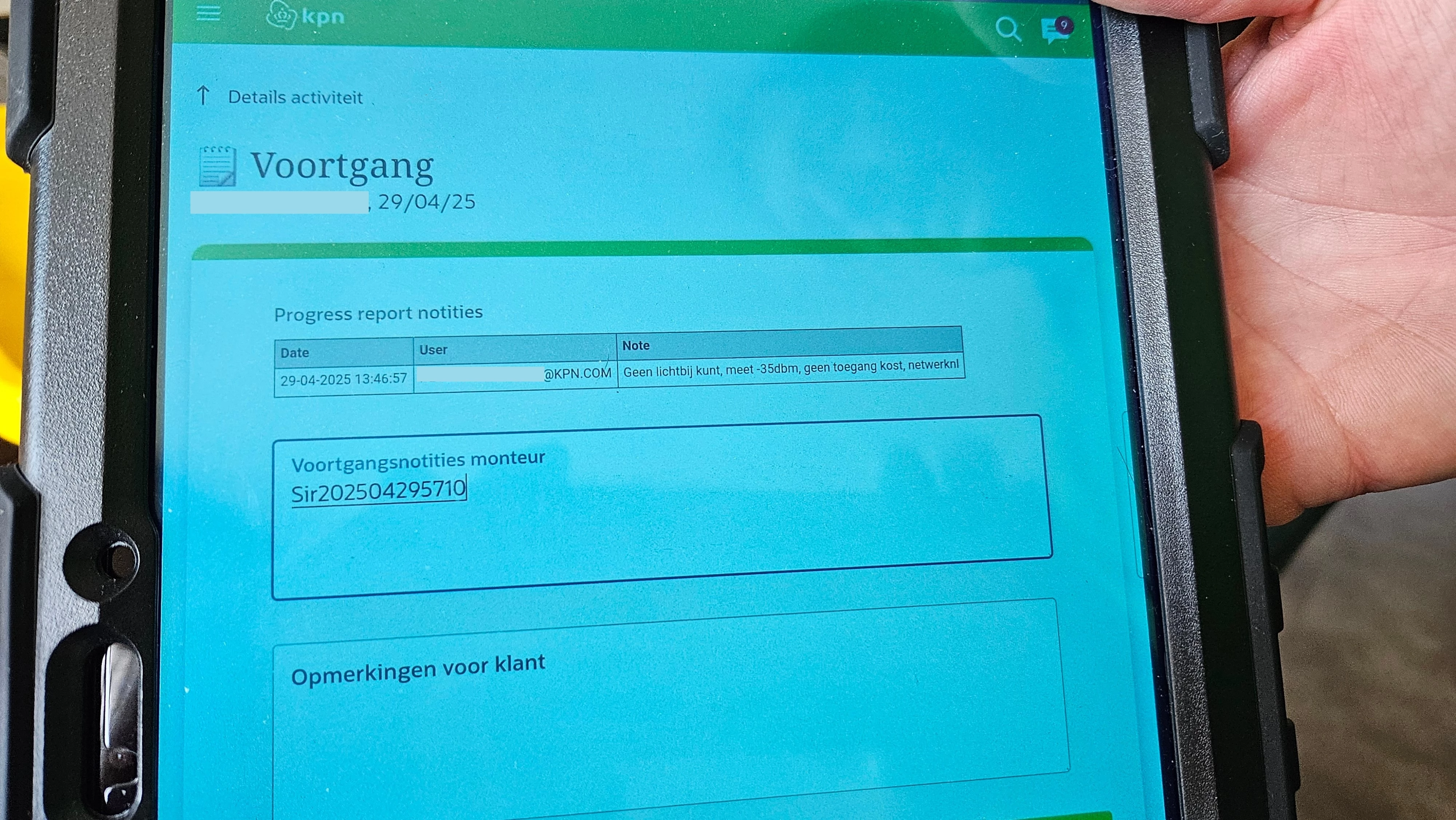 Er is al iemand geweest maar die heeft het niet kunnen oplossen en heeft de melding weer doorgezet.
