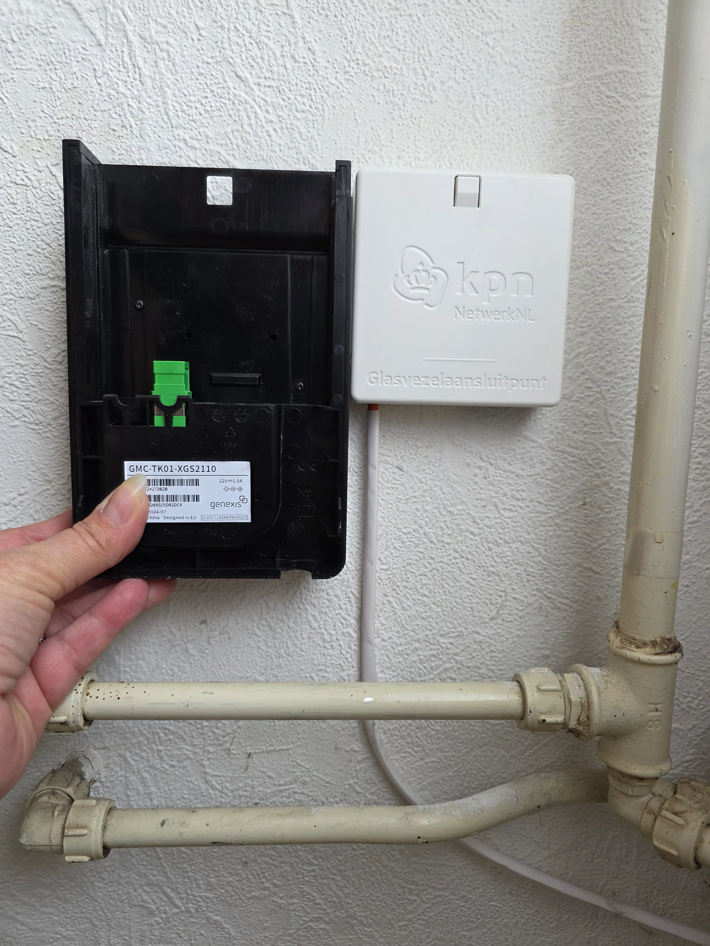 Geen opening in glasvezelkastje waar KPN kastje ingeschoven kan worden