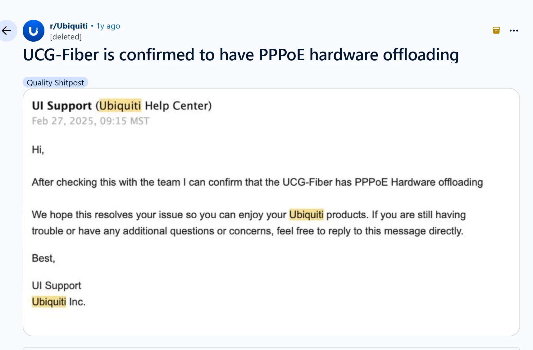 De UCG-Fiber is op dit moment de enige Cloud Gateway/Dream Machine die echte hardware offloading van PPPoE ondersteund inderdaad.