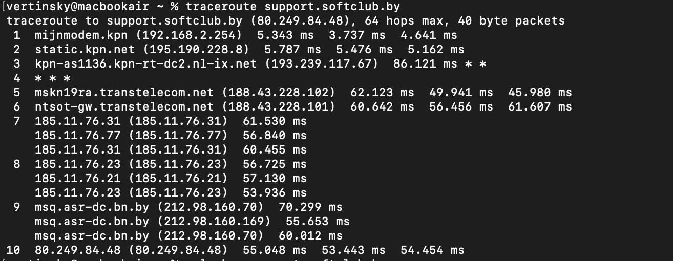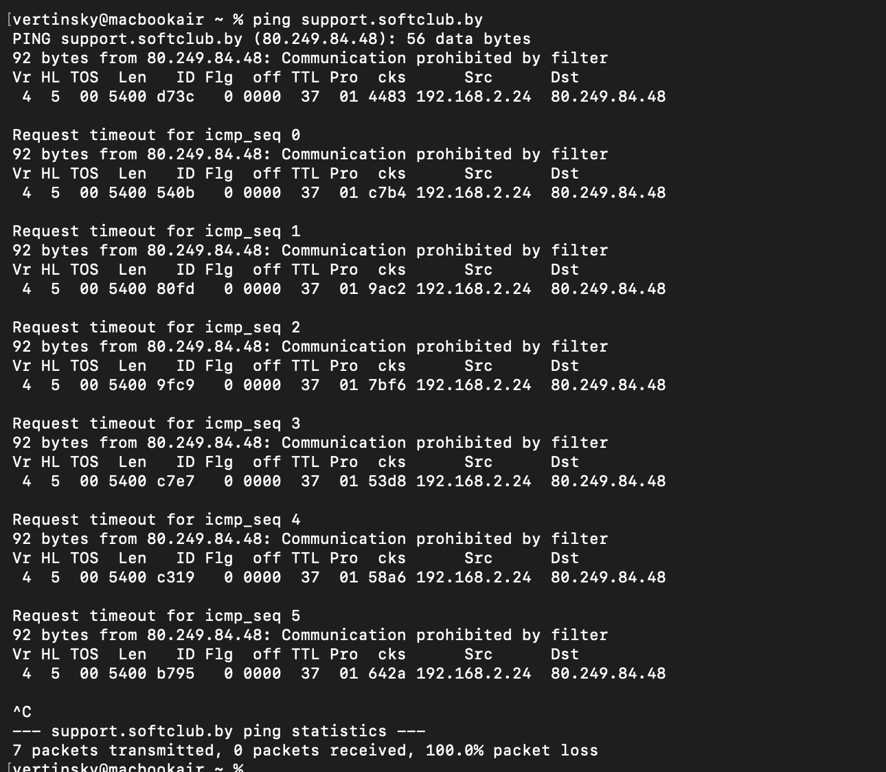 En ook bij support.softclub.by wordt de ICMP gefilterd. Maar ik kan de site op poort 443 (HTTPS) gewoon bezoeken.