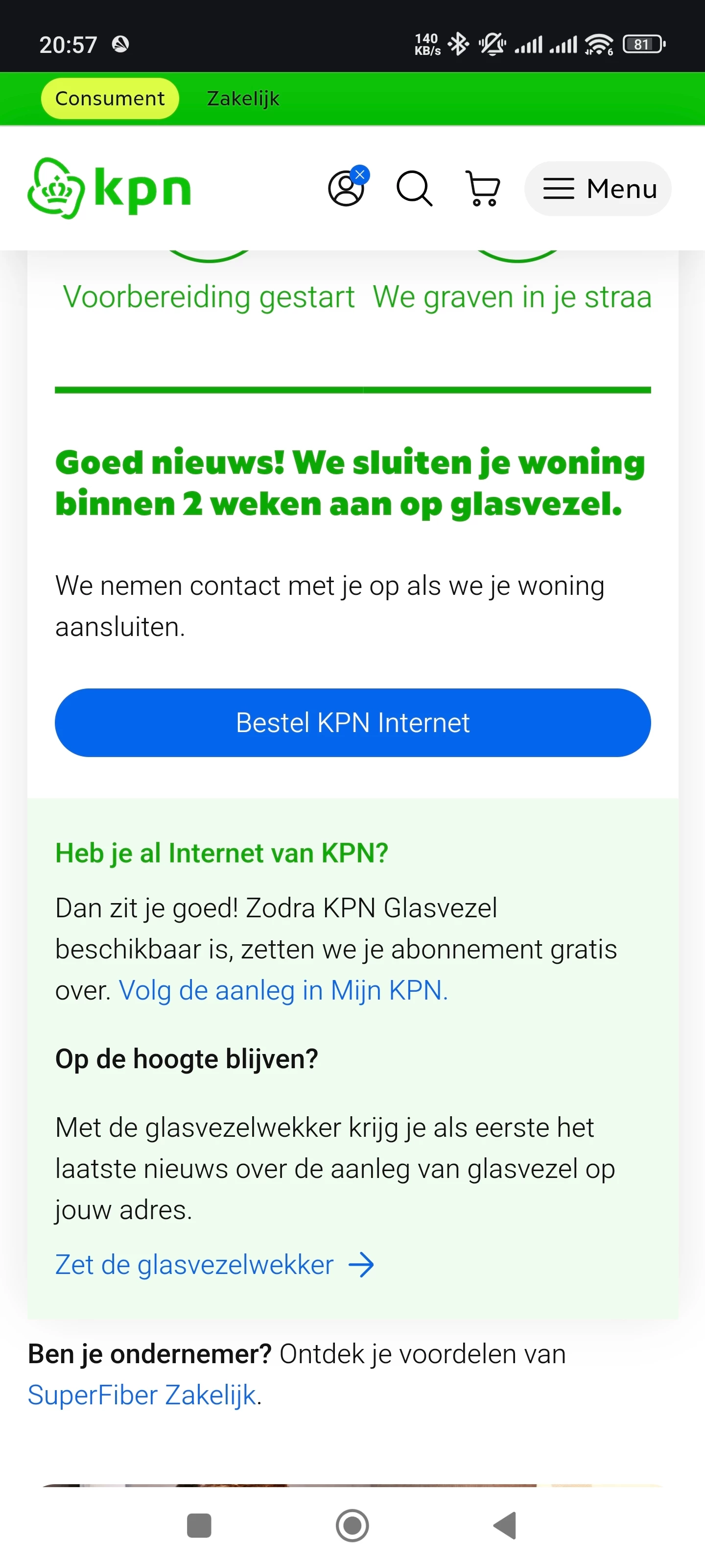 Op 20 februari bericht van KPN dat ik gebruik kan maken van glasvezel.