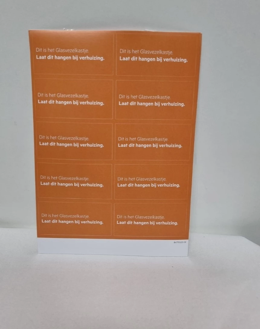 Bij andere aanbieders zie ik wel een sticker op de glasvezelkast met :