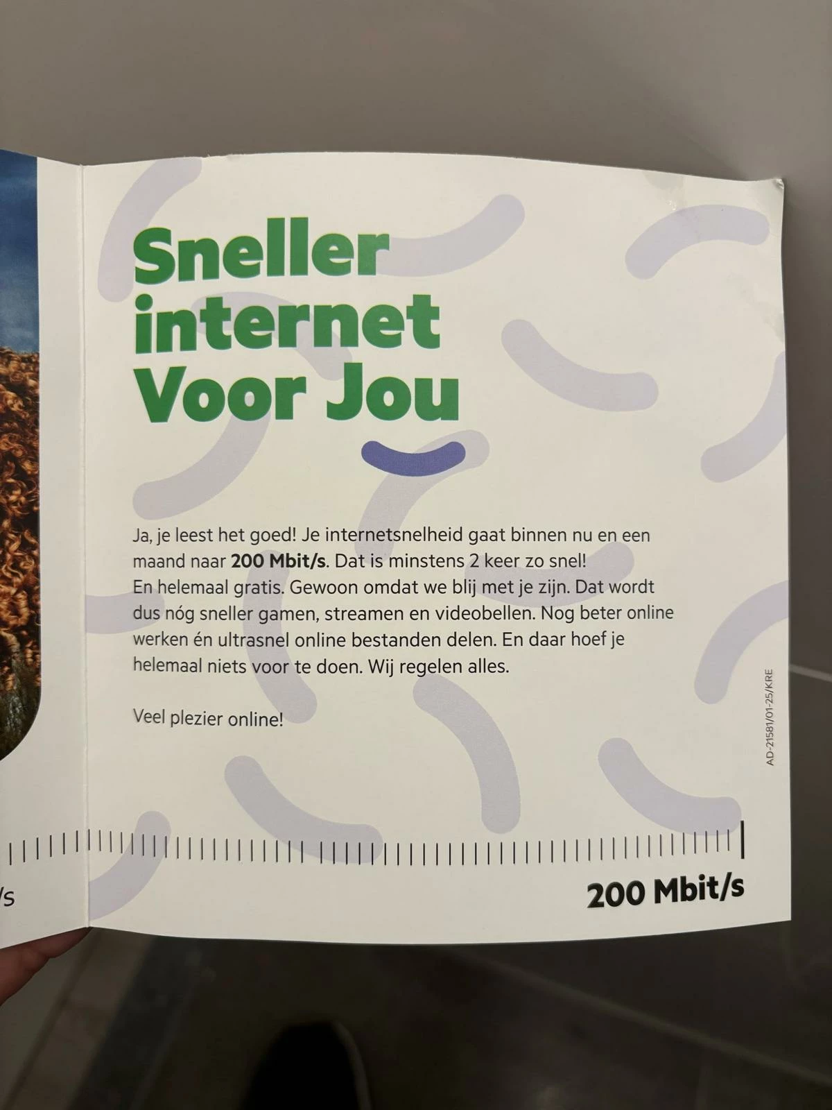 Helaas is bij mij de snelheid nog niet verhoogd. Ik heb zojuist het modem opnieuw opgestart maar dit heeft geen effect gehad. Ik heb de brief op mijn oude adres ontvangen 2 maand geleden en ben intussen verhuisd, kan dat misschien de reden zijn? In mijn profiel staat mijn nieuwe adres, ik kan ook mijn oude adres toevoegen waar ik de brief op heb ontvangen toevoegen